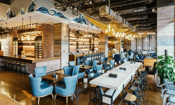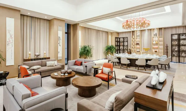 全日制自助餐厅:为宾客搭配健康营养方案,同时提供品种繁多的零点料理、早午餐与海鲜自助餐,主要以国内知名梅兰芳国粹家宴“梅府菜”和张学良宴请“帅府菜”、川湘菜、海南本地菜等