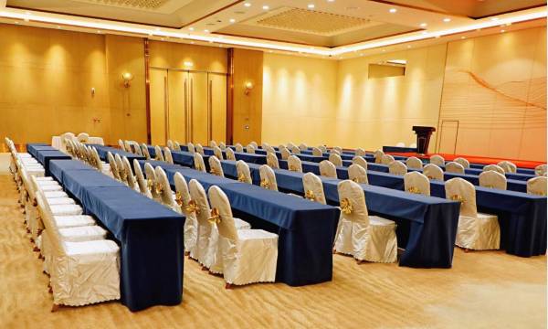 酒店900m²的无柱大宴会厅可容纳800人,并可自由组合分隔,450m²多功能会议室可容纳350人,无线WI-FI覆盖全部会议室,并设有VIP贵宾休息室,为贵宾提供高雅悠闲的休息会议洽谈环境。