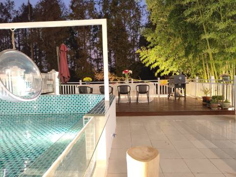 上海竹溪民宿位于上海迪士尼国际度假村东大门对面金家村车程约5分钟的地方,整栋房屋呈网红白色主体建筑,周边竹林环绕,还有潺潺小河流过。有阳台大床房、公主房、吊床、四柱床、榻榻米、星空浴缸大床房等等,非常适合迪士尼游客临时居住!