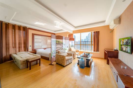 房间宽敞明亮,干净整洁,设施完善,布局精美,室内倍感温馨,窗外风景怡人。酒店地处商务中心,下楼就有美食城、购物中心,地铁等,十分方便。客服热情周到,微笑服务,本来预订的是大床,老板看我们带两个孩子就免费给我们升级双人床。可谓是宾至如家,下次再来入住。