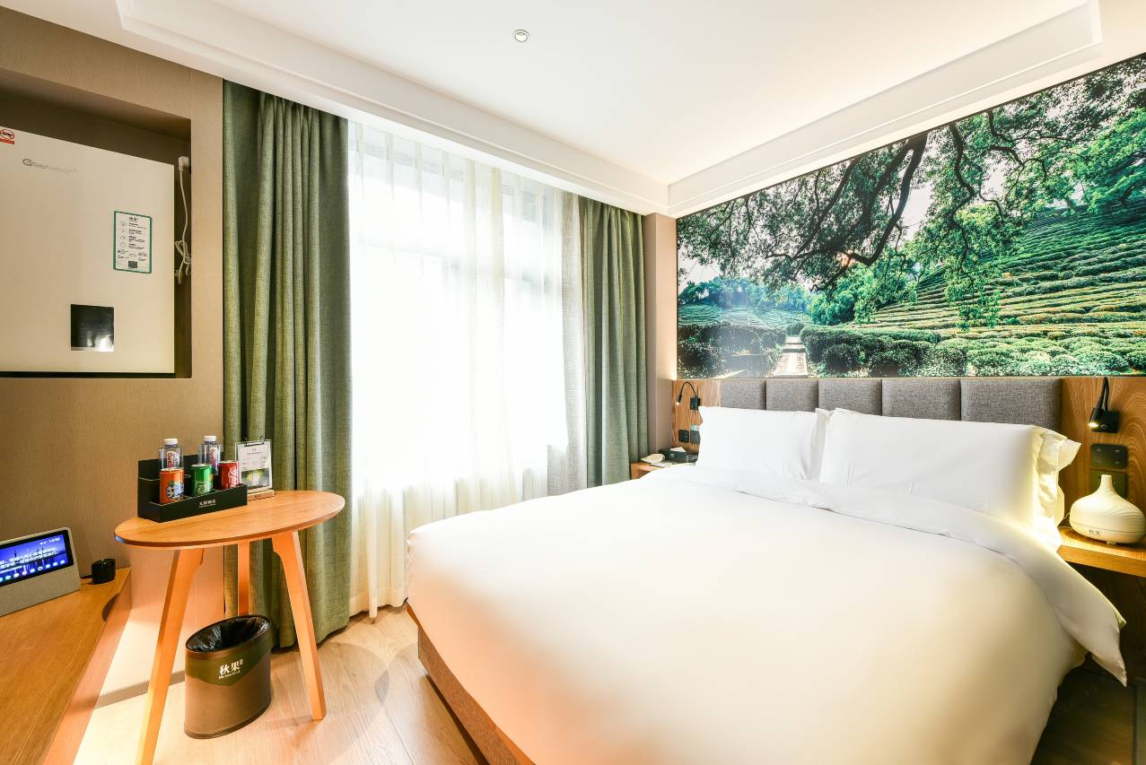 酒店在一楼咖书吧配备维生素加油站,有各种点心、水果、饮品等,随时为商旅客人加油充电;国外200多项黑科技的深度清洁系统和SARAYA坐便清洁剂,保证房间任何角落的高度洁净,让您安心放心;智慧音乐系统及多种可选睡枕,让您在舒缓音乐中尽享优质睡眠;客房配备的新风系统,让您随时畅享新鲜空气;进口朗乐福床垫,符合人体动力学,抚平深夜倦意,舒缓入睡心情,让您体验舒适睡眠;客房配备五瓶赠饮供您自由选择,实现饮品自由。 本店是秋果集团推出的都市人文精品连锁酒店,致力于为旅途客人提供新的住宿体验,引导新的旅途生活方式。酒店精致的人文的景观建筑为水泥森林增添一道亮丽的风景,不同主题的摄影作品使客房静雅舒适;首层茶书吧自然静谧;雍米女性楼层温情脉脉;智慧客房调节系统,让您与科技互动,与时代同行;酒店婉若繁华喧嚣都市中的世外桃源,让您放松、惬意; 本店期望与旅途中的您一路同行!