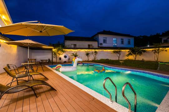 民宿设施完善 游戏机,唱歌 麻将 泳池 烧烤 游泳都可以,公司团建,大家玩的都开心,服务也很周到,推推荐!