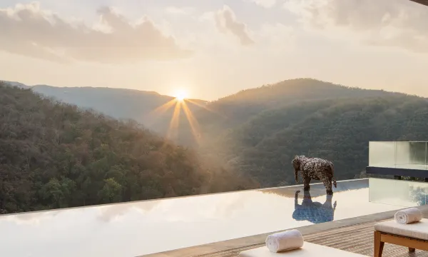 房间真的太赞了,周边的风景绝了,山景环绕,阳光倾泻到阳台,微风吹佛泡池边的纱帘,还有各种树木、花花草草,以及极具民族风情的家具,细节都特别用心。最想提的是无边泳池,清澈见底,拍照巨出片儿!