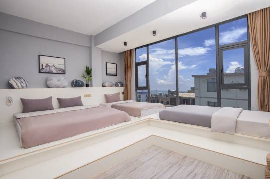 客栈设计师简欧北欧风格,日式榻榻米配合!整个房型干净卫生上档次。客房装修风格属北欧风格,非常受大家的喜欢,舒舒服服的2米特大床能让你睡姿美美到自然醒!起床拉开窗帘,暖暖阳光撒入房间,整个房间突然变明亮十分,窗外不远海上渔船点缀,浪涛声入耳,屋外院子,三两小童与小狗小猫奔跑游玩,笑音之美…客人可随时到海边漫步、游泳、潜水、骑摩托艇、开沙滩车、出海打鱼。