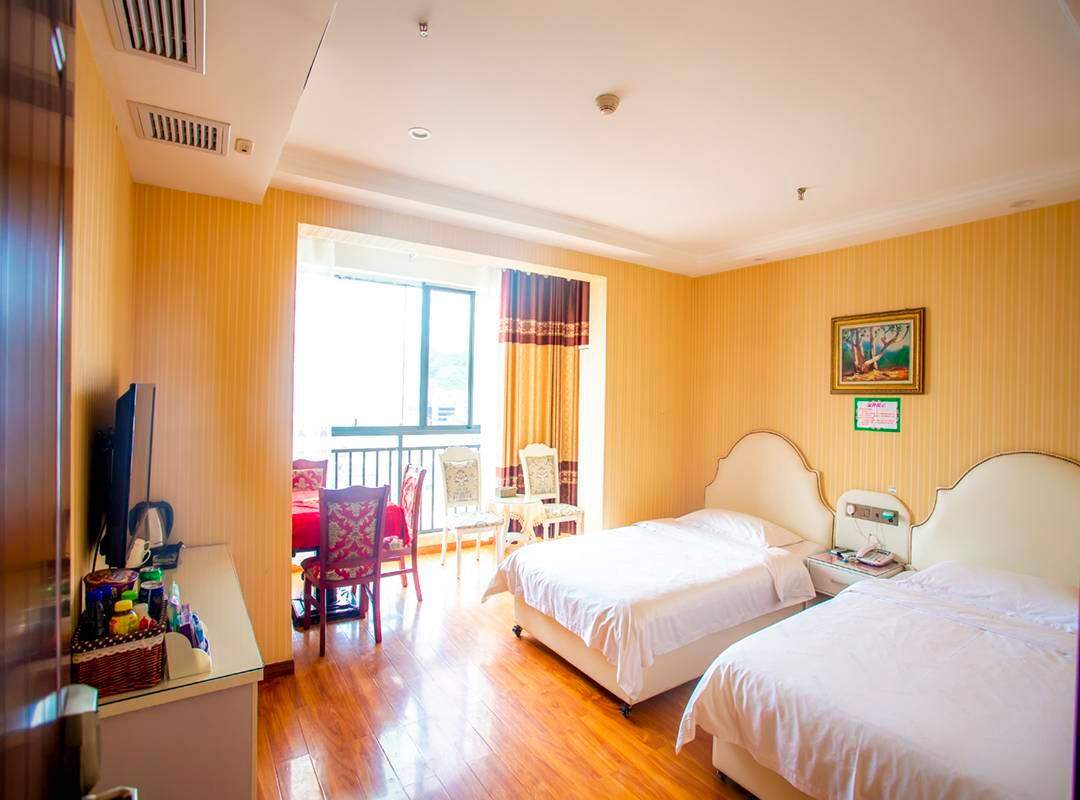 房间宽敞哦,高层视野好,我们订了两间。一间临街,一间靠山。各有风景。非常满意。