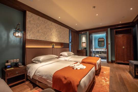 房间国风满满,地理位置比较好,在新汉盛景的旁边。房间很大,内部设施齐全。摆设门窗都是木质古风。床也比较舒服。