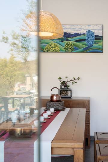 房间设计既现代又充满乡野气息,原木家具、落地窗、每日更换的野花点缀,细节满分。小徐管家服务贴心周到,早餐的手工面条和有机蔬菜新鲜美味,还能体验采摘、垂钓等农趣活动。公区的茶室、咖啡厅和庭院禅意十足,夜晚灯光映衬下更显静谧,随手一拍都是大片! 入住民宿正值杏子熟的季节,体验了打杏子,非常开心!