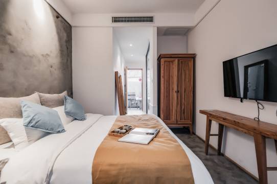 民宿依山而建,灵活运用古人智慧,按照24节气命名每一间客房,别具一格的设计概念。房间简约、古朴,不乏浪漫主义气息,巧妙地将阳光、星空、天台、木屋溶于骊山之中,象征“城市人”对生活的美好希望。民宿邀您一起走进咫尺的、探寻遗失的美丽,感悟空无的智慧,对喧嚣的城市用叛逆的方式量身定制您的度假、休闲生活。