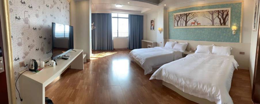房间明亮 宽敞,卫生。周边环境安静,特别是晚上。周围看出去大片的绿色,空气比住城里好太多了。床品干燥无异味。