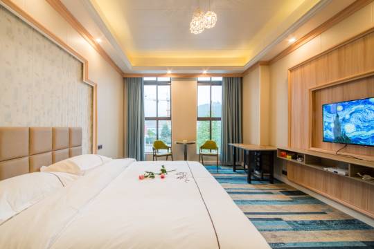 酒店坐落于清镇市职教城时光贵州旁,酒店是一个集娱乐,竞技,主题为一体的精品酒店。周围交通便利,美食种类丰富,一站式解决吃、住、行的困扰,以满足您绝大多数的出行;紧挨时光贵州、四季贵州·山地温泉水世界、巢凤寺等游玩景点。同时酒店周边还有很多特色美食,乡村剔骨鸭、建国泡椒鸡、樹厨、三刀流烤吧等等,是您出行的理想之地。