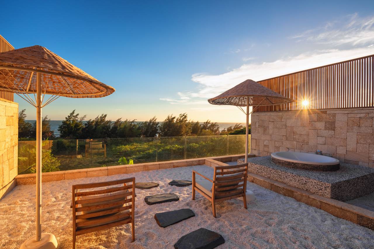 我们住的海景房更是惊喜满满,270度落地窗毫无遮挡,每天醒来拉开窗帘就是治愈的碧海蓝天,私人泡池正对着海景,边泡澡边听海浪声,松弛感直接拉满。房间设施超赞,戴森吹风机、科勒卫浴一应俱全,床品柔软舒适,卫生打扫得无可挑剔。