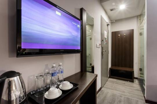 在特里优姆酒店享受卓越的服务和一流的设施,创造难忘的回忆。 住宿内提供免费网络连接,确保您在住宿期间可即时通信。 住宿提供客房送餐服务,是您理想的住宿选择。为了确保您获得****的放松,客房采用了温馨的设计,并配备了所有基本必需品,为您营造愉快的入住体验。为了确保您享受愉快的入住体验,部分客房提供空调或寝具用品,所有客房均以您的舒适度为中心而设计。 在部分客房,客人可以享受室内视频流媒体、每日报纸或电视带来的乐趣。住宿了解浴室设施对于提高客人满意度的重要性,因此在部分特定客房内提供浴袍、毛巾或吹风机。