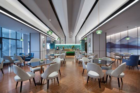 酒店的装修风格很大气,新中式风格很高级,前台的小姐姐热情周到,大厅满满的中国风艺术,很适合拍照打卡也是一绝,房间的床品很舒服,要赞一下她们家的枕头,零压枕芯美美的睡了一觉,享用了酒店的早餐,很是丰富,品种居多,手磨豆浆水果地道米粉的特色味道不错. 果然对比之后的酒店没有选错.