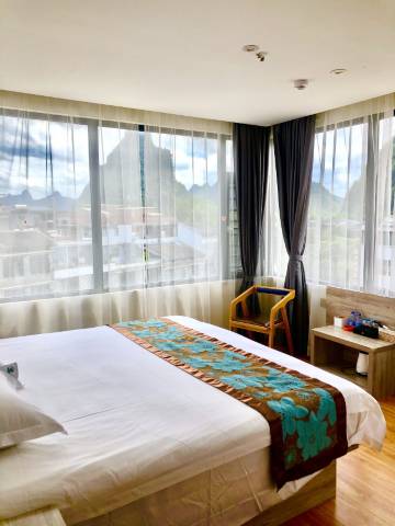 酒店装修很新!房间面积够大!住的很舒服!房间里面很干净!服务态度很好!离景区就两分钟!离外面的街区好吃的都很近!走过去就到了!非常不错!👍!