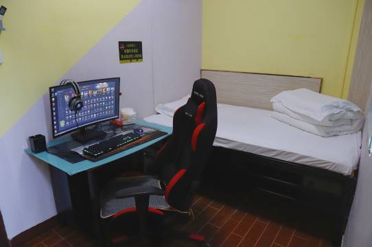 门面很小,就是居民楼房间改的,放两台电脑和一张上下铺的床