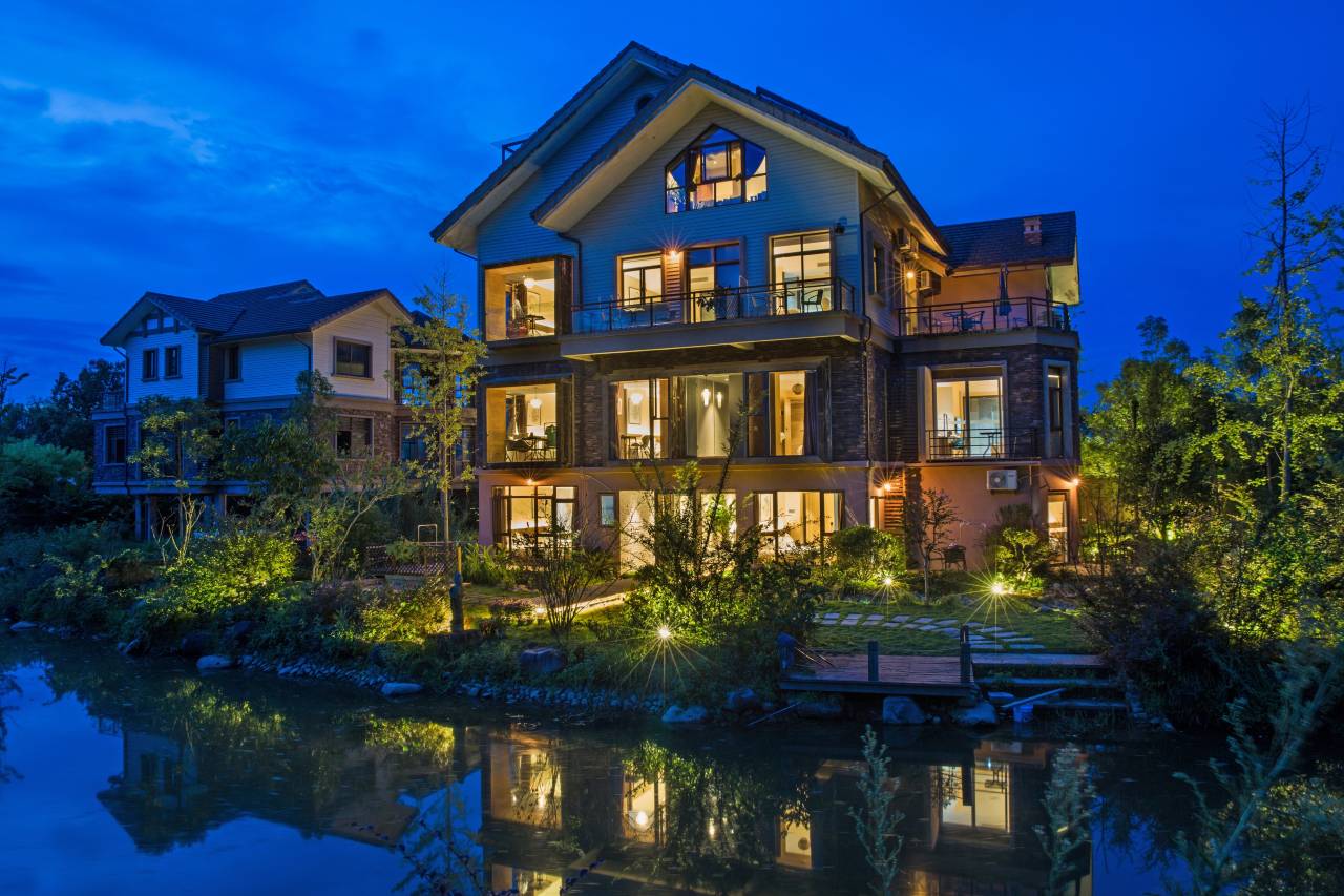 每个房间都自带室外阳台或独立花园,朝闻鸟啼,午观花开,夕下蝶飞,夜品人生,禅茶一味,文旅相融,故昼夜相替,日月悠长,而花溪无恙,是所谓花溪乃贤人之才情。光与影,溪与花,月下流水声,梦里花开时。