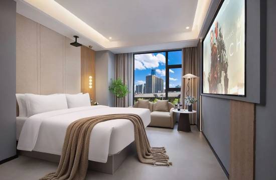 酒店地理位置很好,附近吃喝玩乐很齐全,还给免费升级了房型,服务态度很好,房间风格我很喜欢,干净整洁,没有异味,窗外的风景也很好,晚上睡觉很安静,停车位充足好停,有洗衣机烘干机