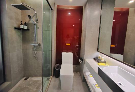 这个酒店是在商业街道上,非常繁华,周边全是吃饭的,下高铁坐车五分钟不到就到酒店了,很方便,房间卫生也很干净,都是一次性用品,非常的人性化,酒店里设施也很全,主要前台小姐姐服务态度也非常好,下次出差还来这家店。