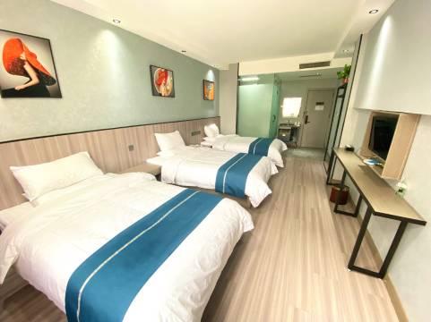 出差入住酒店,三人间,首先价钱优惠,比开两个标间优惠多了,其次房间很大一点不憋屈。房间干净卫生,无异响无噪音无异味,空调给力!前台服务态度很好!