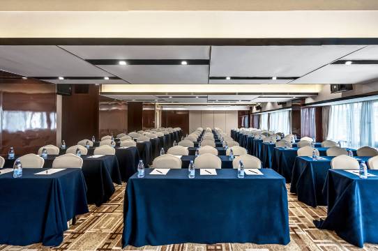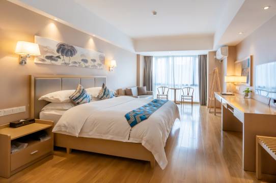 酒店配置有1500平方超大室外游泳池、500平方室内游泳池、健身房、多功能球馆、瑜伽室、高级会所、大型免费停车场。外揽并规划有1000亩大美荷花塘、3万平方米的商业街区,内享千米生态水系等配套设施,优美舒适的环境是商业洽谈、旅游度假的上佳之选。