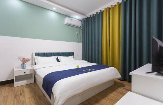 房间位置在开封万岁山附近,走一段路可以到。马路对面有小吃街,很热闹。老板比较害羞,不会随便打扰到客人。