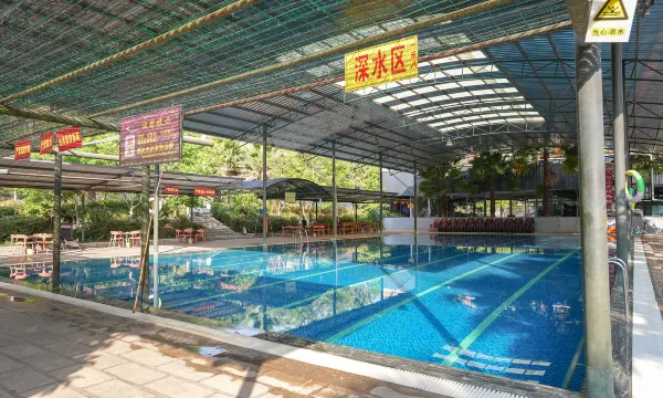 酒店距离草莓采摘基地约50米,距离九峰山护国西华禅寺直线距离约2.7千米驾车9分钟即可到达。酒店装修豪华,有独栋四合院小别墅,内含温泉泡澡、标准化游泳池(长30米、宽15米)、黑山羊火锅、重庆火锅、家常炒菜、KTV等娱乐场所。酒店拥有拓展训练基地,可进行野外露营、团队凝聚力培训等。