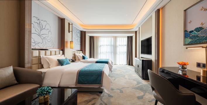 纽宾凯国际酒店(仙桃环球中心店)是纽宾凯集团旗下专业从事中高端精品酒店投资经营及品牌打造的专业化集团公司,凭借扎实的专业经验和国际视野、优良的经营信誉和服务品质,形成了具有自主知识产权和价值的“纽宾凯高端连锁酒店”知名品牌,酒店设有一百余间各式古典建筑风格华丽而高贵客房,让客人基于空间材质、光影、感知的情境演绎,顷刻间而化身为这一场穿越古典与现代、当下与未来的“时光旅人”
