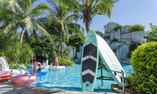 住的很满意,大堂门口刚下车就有行李员帮我拉行李,前台也很热情帮我选了我喜欢的朝向房间,都很礼貌热情,很幸运的是我们去外面的泳池游泳,工作人员告知当天是刚换好水第一天开放外面的泳池,哈哈哈开心畅游了好久,二楼刚开了个儿童乐园,早上10:00才开放,感觉开的有点晚了,还有点装修味没散,下次有机会再带娃来吧。