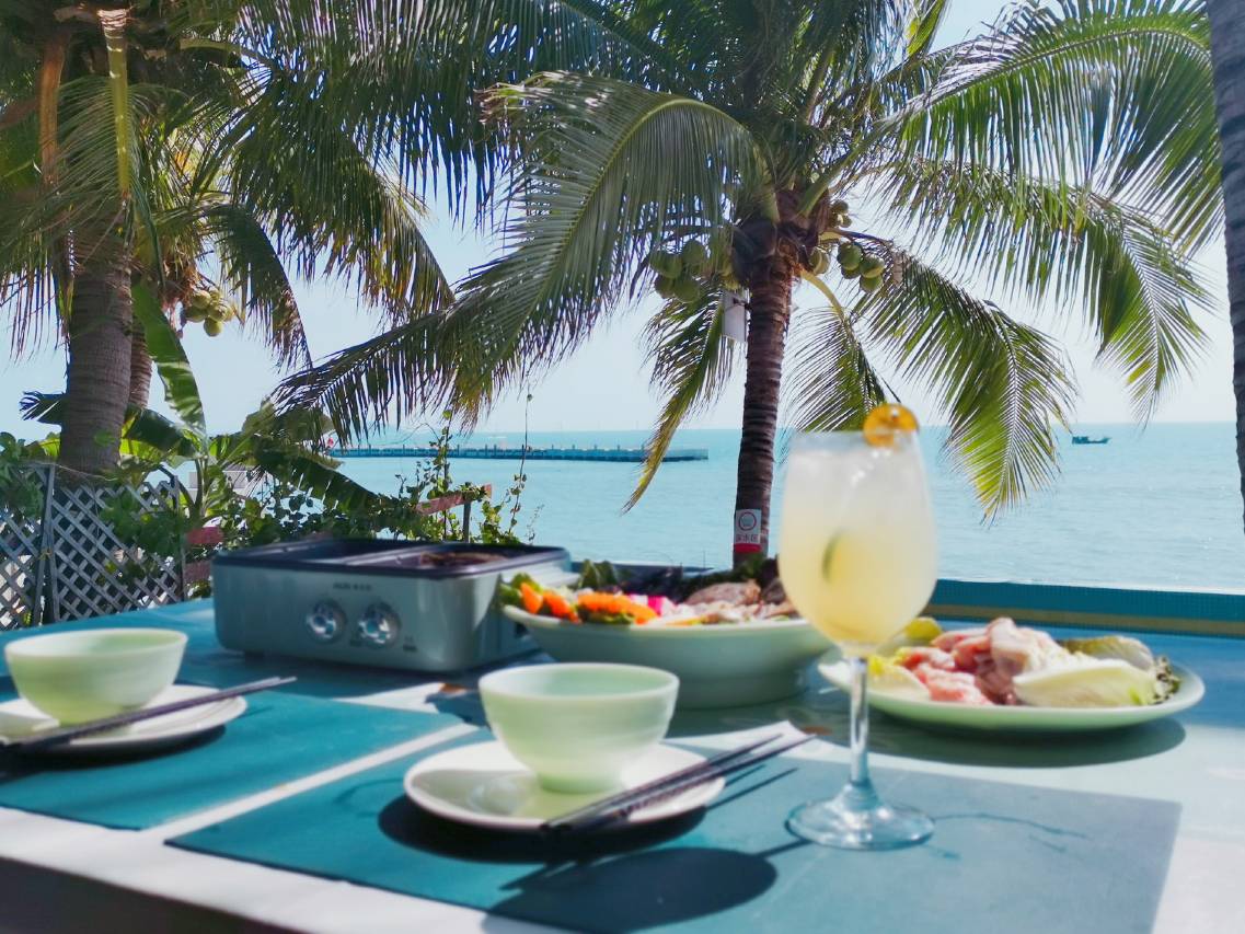 民宿配备海景餐厅(室内外、海景露台),海鲜涮烤火锅等多种丰富菜品,推荐菜品:海鲜涮烤、椰子鸡火锅。让你真切感受到吹着海风、吃着涮烤火锅、看着一线海景所带来的惬意。