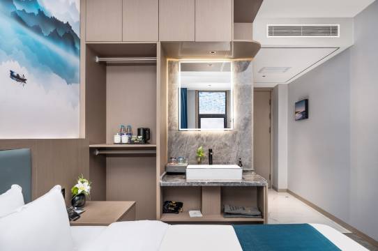 房间配套齐余,整齐干净,不足之处是挂衣架太旧,看着不爽。早餐品种丰富,就餐环境很好。尤其值得说的是,火神木站出站有5路公交车到酒店门口(鸳鸯塔站下)。酒店门口的4路公交车到二郎山景区。神木的的士是不打表的,从火车站打车到酒店20元,拼车15元。目前没有网约车。