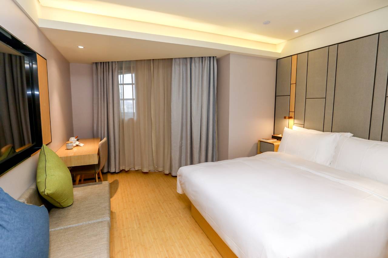 客房选用(金可儿)床垫;他们专注50多年的护脊床垫生产研发,专业呵护颈椎健康,睡眠更舒适。拾趣茶具及正山小种、白牡丹两种原叶好茶,顾客在旅途繁忙之余也能寻得一方自在舒适。酒店满足从商务、住宿、自助洗衣房专业洗烘熨烫设备一应俱全的个性化需求。