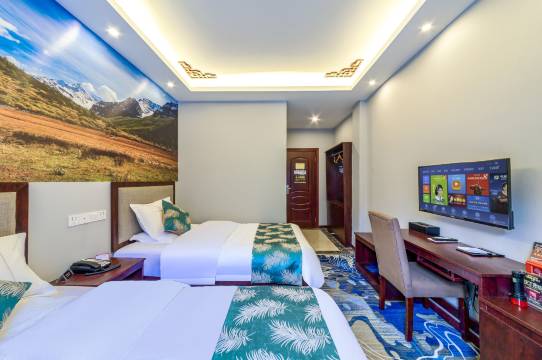 酒店在香格里拉镇的中心位置,门口就是亚丁广场,周边环境非常安静,出行便利,酒店房间很大,采光好,摆放整齐,打扫的干净卫生,无异味。很满意的一次入住体验
