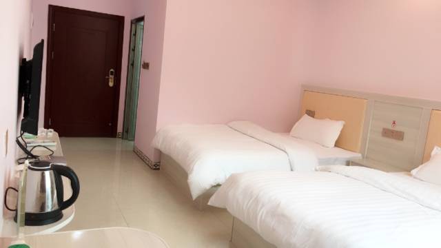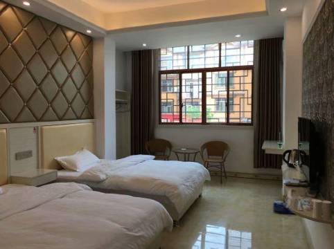 江华鑫怡宾馆位于农村商业银行对面。交通便利。附近有早餐饭店超市。现代简约装修风格,空气流通清晰,独立空调,24小时热水,独立卫生间,吹风机,有线电视无线上网,停车