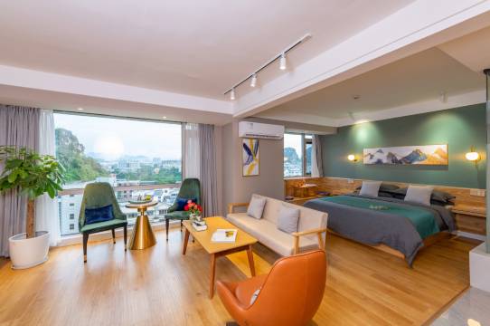 2018年装修完成,2020年1月营运。公寓位于芦笛景区附近,可俯瞰喀斯特地貌。闹中取静,交通便利,停车购物方便。大型超市、银行、美容、美发、干洗店、药店,步行50-400米有餐饮、小吃店、夜市、菜市等。距火车北站约4km、火车南站约7Km、火车西站约8km、二江国际机场约25km、距离智慧谷约50米(餐饮娱乐)、二江四湖延长水系约400米、鲁家村/桃花湾景区约1.5km、芦笛景区约1.7km、木龙湖景区约2.5km、叠彩山景区约4km、伏波山景区约5km……设施:提供公共休息区可会友、品茗、用餐,付费使用厨房服务:提供收费接送机服务、旅游票务服务、旅游咨询