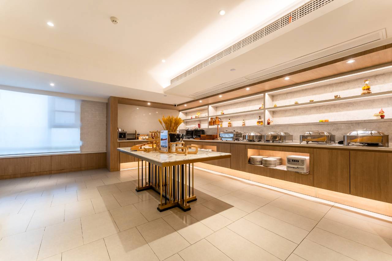 室内设施齐全,空间很大,非常满意,每天还多给2瓶水,自助早餐很好,品种齐全,味道不错,热菜现炒现添。可能喝咖啡的人少。
