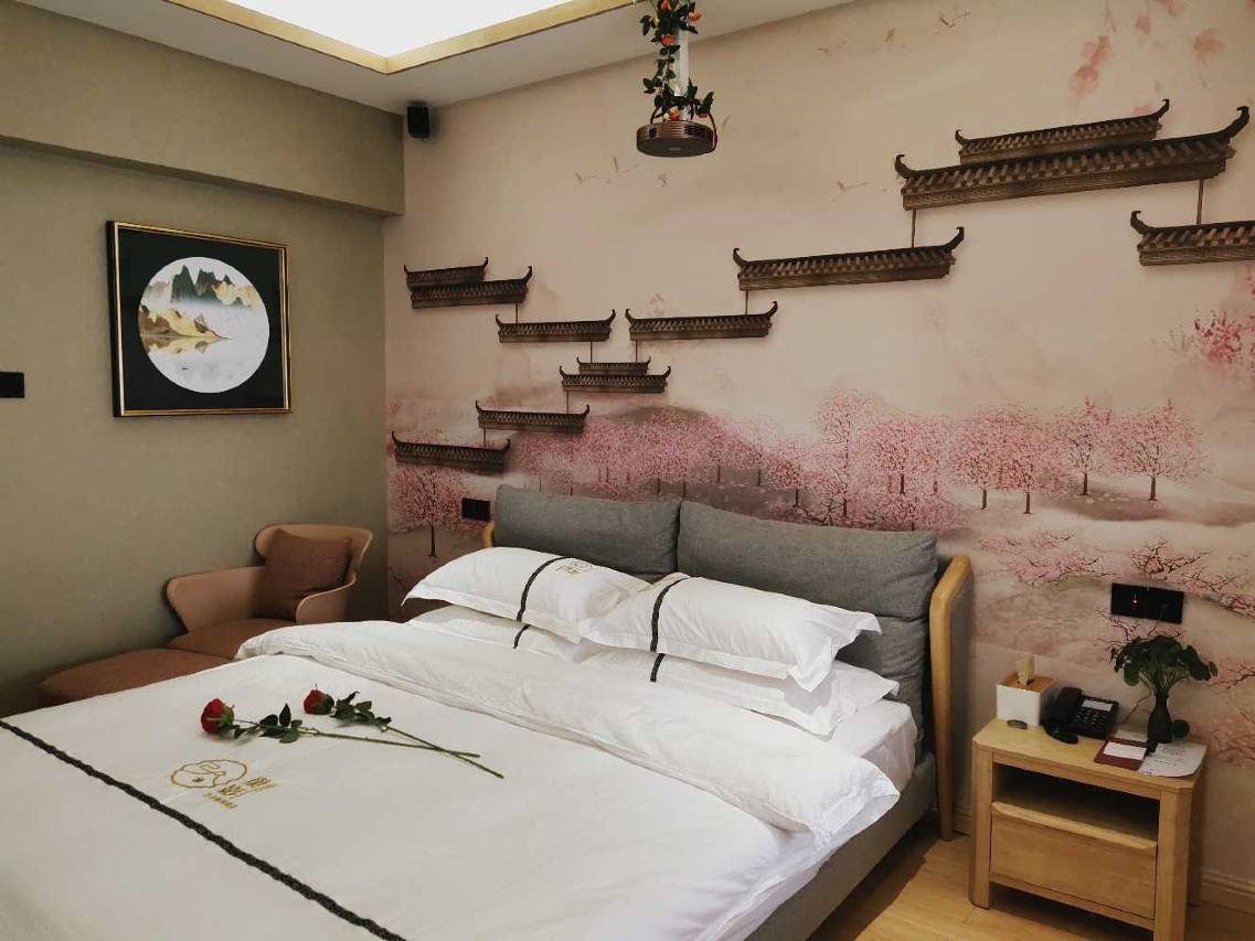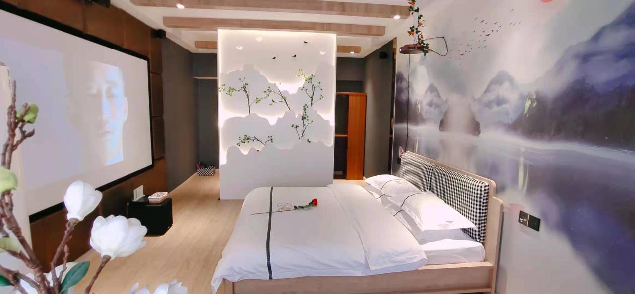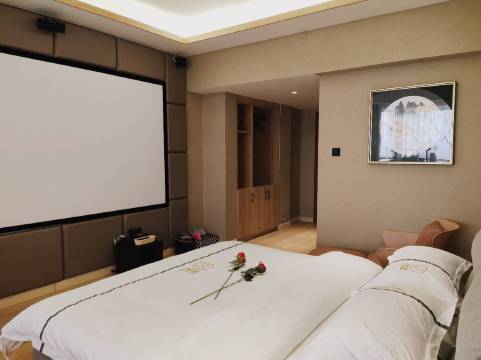 本店是一家以电影休闲为主的影宿酒店,为客人提供一个精致、时尚、潮流、隐私,能够呵护全身心的住宿环境!我们拥有进口品牌的高端音响设备,5.1声道专业功放,高品质音频光纤传输,为您的耳朵享受保驾护航,拥有专业投影电影屏幕,专业隔音处理,不同的装修风格让您体验!