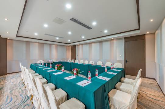 酒店拥有百余间客房,面积从40㎡到70㎡,满足您多样化的需求。酒店各项配套设施一应俱全,会议室、中西餐厅、餐饮包厢、室外儿童嬉水池(不可游泳)、健身房、儿童乐园等,无论是轻松聚会还是商务聚餐,或者是亲子游玩,都将为您提供无可挑剔的周到安排。