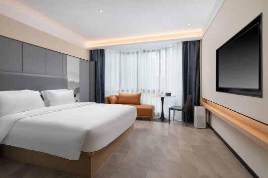 房间干净干湿分离,环境舒适,房里配有洗漱用品,吹风机茶叶咖啡矿泉水,最最重要的还有一次性洗脸巾很干净用着很安心,总体感受很不错,服务态度很好!提出来的问题都能及时处理给予解决,枕头很软很舒服,周边交通便利,早餐品种也很丰富,推荐入住!!