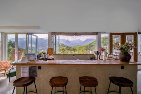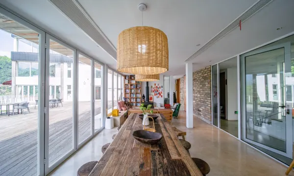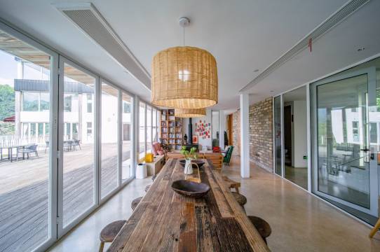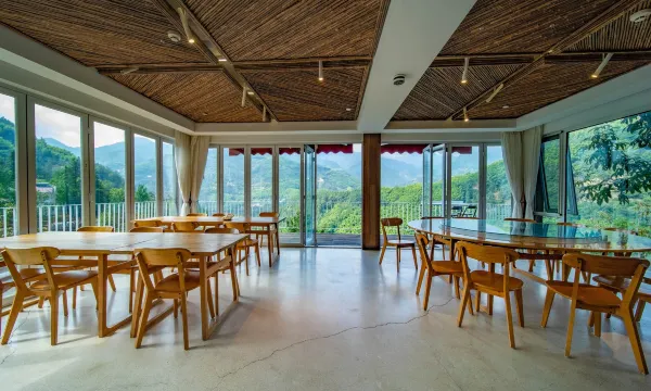 杭州喜欢民宿位于浙西大峡谷龙井桥村杨岭,民宿设有喜楼和欢楼两栋楼,内有房间10间,包含亲子家庭房、双床房,大床房三种房型,可满足不同人群的需求;并且,每个房都采用大面积的落地窗,至少可见180°的山景,与自然亲密接触。公共区设有书吧、水吧、咖啡吧、茶吧等,无论室内还是室外都有很大的公共空间。喜楼和欢楼的楼顶也做了休息区供大家玩耍。