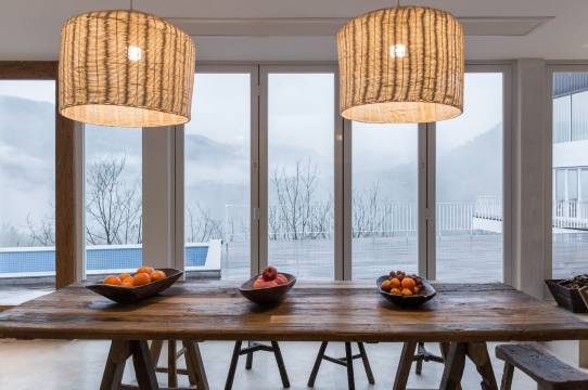 超预期的一次体验,细雨中在浙西大峡谷的山路蜿蜒而上,溪流很急,甚至能看到山间倾泄的瀑布,民宿就坐落在山腰之巅,远眺烟雾缭绕,宛如仙境。一层是公共区域,装修现代,崖边就是泳池,老板早已在长桌备好了水果,茶水,过来热情攀谈。订的房间三面落地窗面向大山,伴着低音炮的悠扬歌声让人身心放松。晚上体验了农家美食,菜品丰富,色味俱全,老板赠来美酒跟我们开怀畅饮,好客之情满满。饭后雨止,老板邀我们带着孩子去山上抓萤火虫,给孩子带来了难得的体验,回来老板又张罗烧烤,在悬崖上的土灶台上体验了店里的秘制烤鸡,心满意足。翌日在山间品尝了店里丰富可口的早餐后,依依惜别,打卡风之谷乐园,人少景美,流连忘返