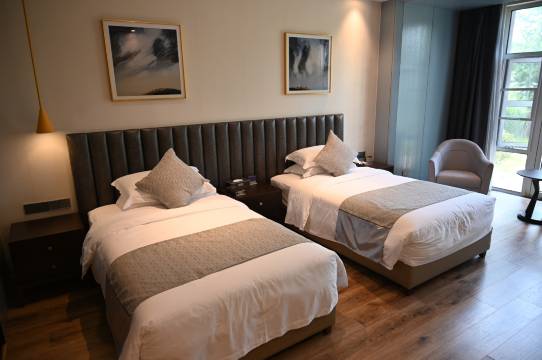 酒店采用丹麦建筑风格,总建筑面积7963平方米,酒店硬件高档豪华,功能齐全,服务项目完备,特色鲜明,是一个集旅游度假、餐饮住宿、水疗养生、健身娱乐、婚庆会展、商务洽谈为一体的综合性旅游度假型服务酒店。酒店客房共计82间套,128个床位,由主楼商务客房和12栋花园洋房构成。其中花园洋房由轻奢风(二层,2单2标)、美式风(三层带电梯,3单2标)、简欧风(三层,3单2标)等风格不同的洋房组合而成,尽显奢华尊贵,让您在回归自然,体验“慢生活”的同时,尽享家的温馨。酒店紧邻204国道和连淮扬镇高铁站,在建的花果山机场也近在咫尺,交通便捷。
