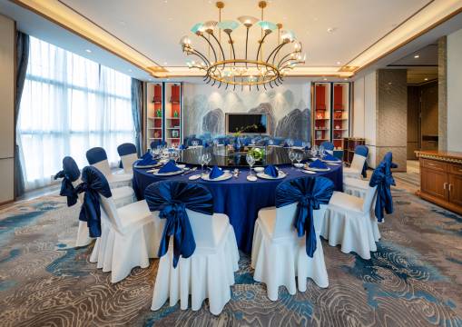 酒店主楼高24层,总建筑面积约3.4万平方米,酒店建筑风格时尚典雅,尽展时尚简约的气质。10个各具特色的宴会包厢,全日制餐厅、宴会厅、可同时接待1500人用餐,7个不同规模的会议室,配备全套先进的会议设备和宴会设施。奢华的环境、专业的宴会及会议统筹水平、训练有素的服务团队、时尚创新的理念,可满足不同会议活动的需要。