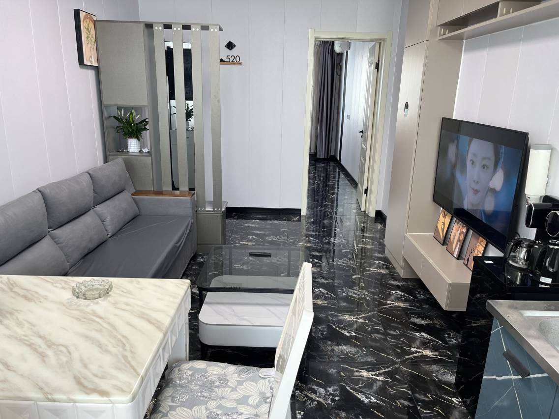 定了两间房,是同一个小区不同单元的一室一厅一厨一卫房间,同行的一个朋友家孩子表示更喜欢这样的房间,感觉好像住在家里一样。小区很安静,吃饭也非常方便,出了小区就有很多饭店,离火车站也非常近走过去十分钟左右。特别感谢老板把我粗心丢在房间的充电器给我邮回来。