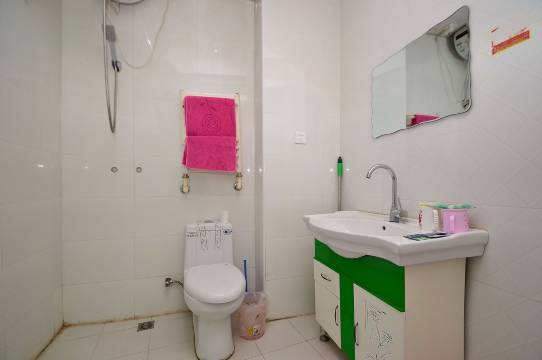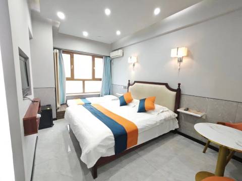 前台姐姐态度很好 房间也比较宽敞干净,房间里有电视冰箱洗衣机 一次性洗漱用品有牙具和面巾 ,房间内缺个小桌子,好在有个小茶几也可以放东西 整体还是很合适的