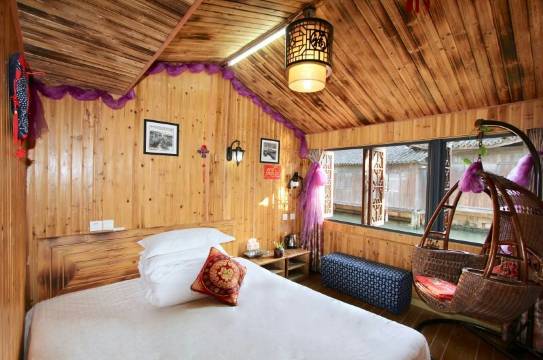 “枕水书屋”,枕河而居、晴耕雨读之意。位于乌镇东栅五A级景区内核心地段,附近有高杆船、财神湾、百床馆、染布坊、拳船等多个著名景点。一层房间名曰;“枕水阁”,一半枕水一半着地之故。推窗望去,小桥流水、乌篷船摇、杨柳依依、飞鸟鹊跃尽在咫尺。开门即是千年古道,漫步在青石板上、巷陌幽长、粉墙黛瓦、马头墙高处处透射出江南水乡的古建筑风格深刻历史文化。入夜后或清风明月或幽雅恬静或轻风细雨。夜宿古镇寻一处静谧,享一份安然,悠然自得,其喜洋洋得矣。且民宿主人诚实守信,勤劳质朴,坚守民宿小本生意十余载,不妄不欺,依规守法。且民宿修旧如旧,保护了古乡古色,古典雅致的江南水乡民间建筑风格。同时选用纯实木地板、墙板、家俱等,真正做到了绿色环保,在墙体内安装绿色环保材料,隔音效果良好,消除了不隔音的通病。朝闻鸡鸣,夕阳下又见炊烟的沉浸式游玩才能真实感受江南水乡乌镇的迷人真容。
