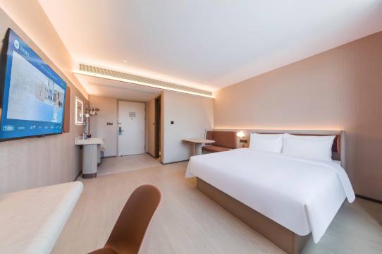 环境干净,服务非常贴心。我们带着孩子,工作人员给加了一床被子。外卖是用机器人送餐上楼的,很新奇很好玩。前台有免费的酸梅汤和橙汁,味道也不错。下次还会再来~