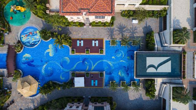 总体来说体验良好。 1.服务方面 a.在还未抵达酒店之前,林诗锐管家就联系我了,贴心询问是否需要提前入住,可以为我们提前安排房间,态度良好。 b.房间一开始不满意,联系管家后立马提出解决方案;需要什么和他说一声也都会尽量满足,为林诗锐管家点个大大的赞! 2.环境方面 a.泳池很漂亮,一条很长很蓝很干净的泳池,水不是很深,安全又漂亮,可惜台风天不能去游泳;基本上都是中式别墅房,红房顶看着让人心情愉悦。 b.大床房很大,房间里没有异味,浴室私密性蛮强的。 c.酒店内设备应有尽有,健身房有氧无氧都可以满足。 3.地理位置方面 都在西海岸了,就不要要求什么靠近市中心了。住在这里的需求一般都是环境、海滩和椰树吧。离免税店蛮近的,附近还有五源河国家湿地公园,可以去逛一逛。 下次还来!