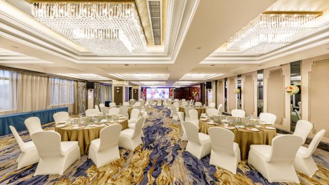 宾馆会议中心位于2F-3F,总面积700平米可同时容纳500人的政务、商务、培训、签约等各类会议。多功能的会议布局亦可拆分为40人至120人的多个中小型会议。会议室均配有专业级在线视频会议系统、高分辨率LED大屏、进口会议专用音响、音控系统、高音质无线话筒等设备,专业的会议服务团队为您提供周详的会务服务。