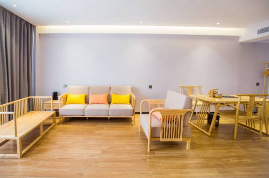 设施:房间有智能管家,可以语音控制;内里既有茶桌,又有梳妆台,施舍很齐全。