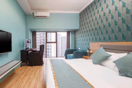 环境很好地理位置也很好挨着地铁站特别方便附近美食还有打卡的地方特别多出去逛逛啥的还有房间设备也还不错用的东西也都挺方便了什么都有、前台办入住也很快体验感很好不错下次还来!